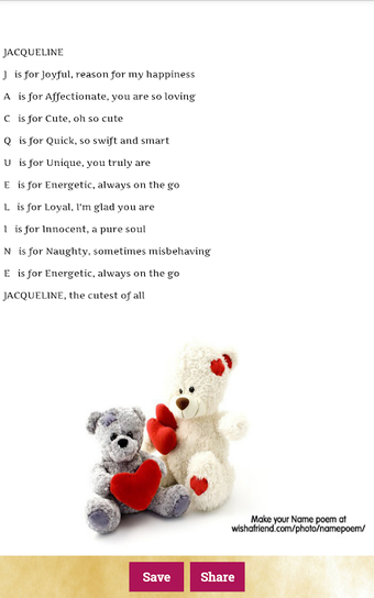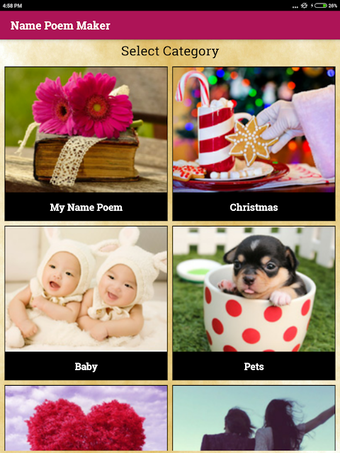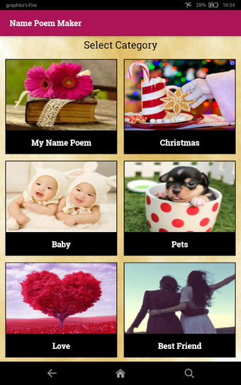 Uygulama, çeşitli kategorilere ayrılmıştır; bunlar arasında kendi ismi, en iyi arkadaş, anne, sevgili ve evcil hayvanlar gibi seçenekler bulunmaktadır. Her bir kategori, kullanıcının özel anlarını ve ilişkilerini vurgulayan anlamlı şiirler üretmeyi amaçlar. Kullanıcılar, bu şiirleri poster veya duvar kağıdı olarak kullanarak sevdiklerini şaşırtabilir.